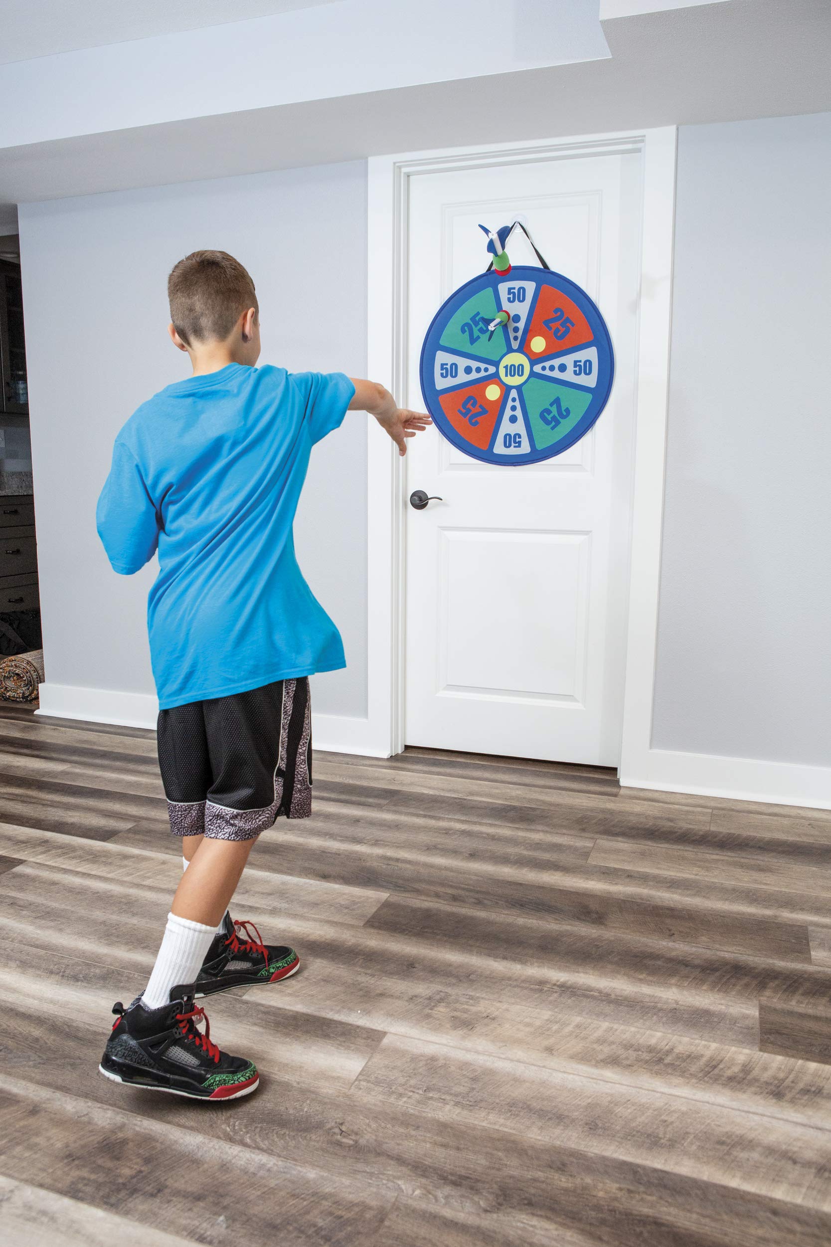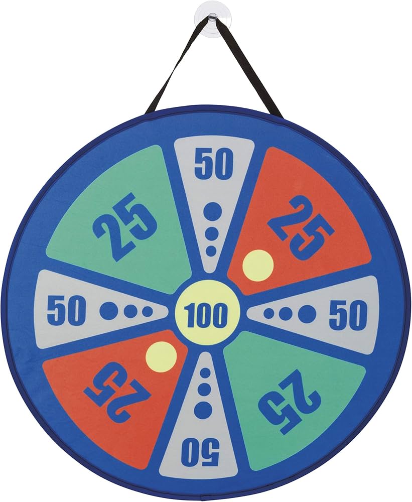 Take aim and become dart playing expert! Good for indoor or outdoor use; the set includes a 26 inch target, 3 easy stick darts, 1 door hook, 1 suction cup hook, and a drawstring storage bag. Play alone or with 2-4 players!