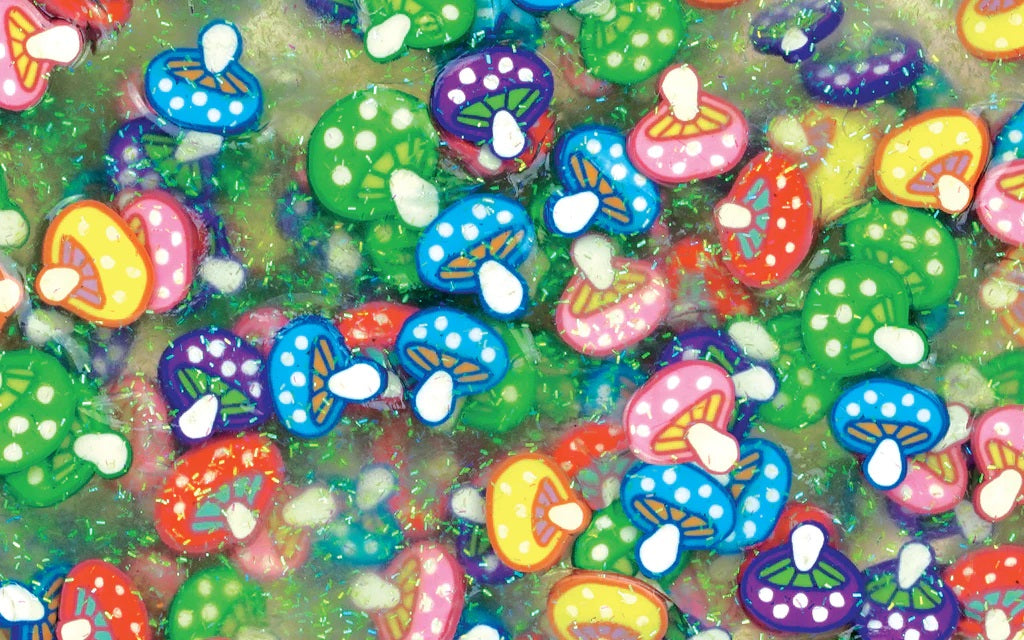 Gnome Home Thinking Putty is where the heart is! How quickly can you forage through the cluster of colorful mushrooms to find the 6 hidden gnomes? If you look close enough you'll always find what you're looking for! With the Hide Inside! collection you will be on the hunt for six unique pieces. So, whether you are looking for spontaneous expressions amongst the smiling faces or bothersome bugs throughout the greenery, you're sure to be captivated with the challenge of discovering them all! Thinking Putty helps build hand and finger strength through a fabulous tactile play experience with unique, unexpected properties and provides relaxing, yet stimulating interaction for anyone with sensory integration issues. Crazy Aaron's putty is non-toxic, won't dry out, and won't leave a sticky or slippery residue on your fingers, so it's great for stretching, molding, bouncing, tearing, popping and playing by kids and adults alike. Collection: Hide Inside!-« Includes tin with 1/5 lb. (3.2 oz) of putty. Color: Clear putty with multicolored mushroom clay pieces and 6 unique clay gnomes.Features: Stretchable, Firm Texture. Materials: Non-toxic silicone. Ages: 3+