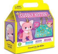 Your new cute plush bestie! With Cuddly Kitten, this all-in-one stylish kit includes everything kids need to decorate, accessorize, and care for their very own Cuddly Kitten. Inside kids will find a soft gray stuffed kitten with sparkly details and a pink velvet tote that doubles as a pet condo or on-the-go travel tote—perfect for imaginative toddler activities, gifts for kids, and creative fun. Kids can dress up their kitten with a pink tutu, gold crown, and floral bead collar, then decorate the soft-sided carrier with shimmering metallic stickers, a peel-and-stick patch, and a matching bracelet to wear and share—an adorable twist on the classic bracelet making kit! They’ll also fill out an official adoption certificate, making their pet-parenting adventure feel extra special and memorable.