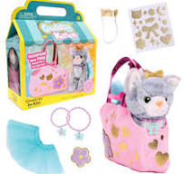 Contents Include: plush kitten, velvety pet carrier, ribbon and bell collar, metallic gold stickers, unicorn horn and shiny butterfly wings