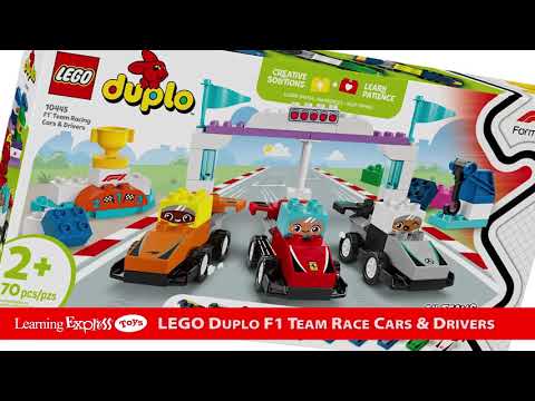 Transport your toddler to the world of Formula 1 with the F1 Team Race Cars; Drivers race track playset. Share your passion for cars and racing with your preschooler with this fun toddler toy that includes 10 buildable race cars, 3 driver bricks, a crane toy, start lights, and a podium. Customizable race cars come in authentic racing colors and logos, letting preschoolers recreate exciting race scenarios. The crane toy adds drama as toddlers attach cars to the hook for a pitstop inspection and speedy repairs. Designed to develop skills like spatial reasoning, hand-eye coordination, and fine motor skills. 70-piece set measuring 6.5 in. (16 cm) high, 15 in. (38 cm) wide, and 2.5 in. (6 cm) deep. For Ages 2+