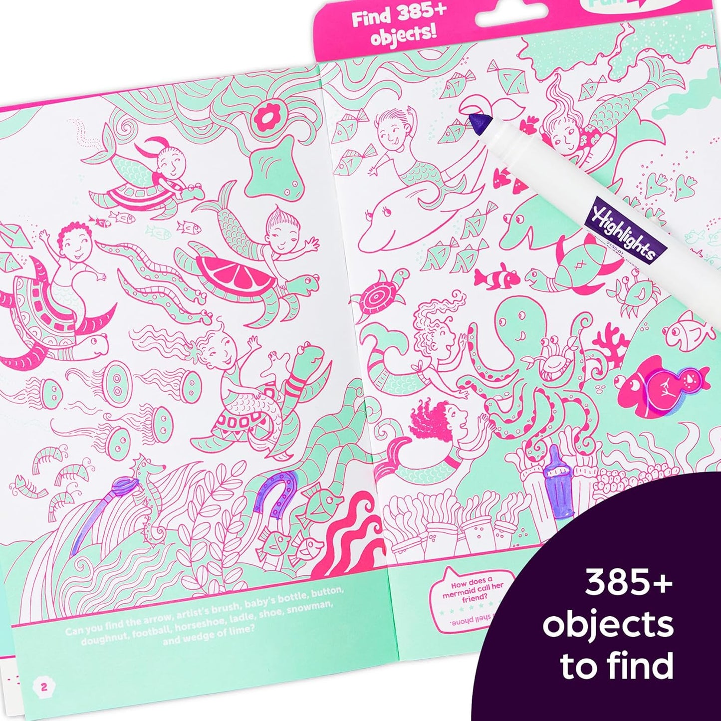 This 32-page Hidden Pictures book offers a fun, brain-boosting activity that young puzzlers and mermaid fans will love. The included purple gel marker makes it easy to create eye-catching, fluorescent scenes as kids find and color over 385 hidden objects. Plus, it’s a handy travel size that’s easy to pack up and take puzzle fun anywhere. Ages 6-9