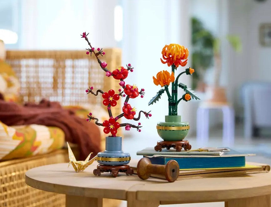 Flower decor building set Take a time out or join friends and family for a relaxing building experience with the LEGO® Icons Plum Blossom flower building project Creative building for plant-lovers This creative building set includes everything you need to craft a plum blossom flower and a pastel-blue pot with a golden band and wood-effect plinth Detailed LEGO® flower set for new and experienced builders This LEGO® interpretation of a plum blossom plant comes with an elegant woody stem and vivid red and magenta flowers Easy-care flower display Add a self-sufficient splash of color to any space with this buildable, zero-maintenance floral display Includes digital building instructions The LEGO® Builder app features a digital version of the building instructions included with this set Dimensions The plum blossom flower, including the plant pot and plinth in this 327-piece building set, measures over 13.5 in. (34 cm) high, 6.5 in. (17 cm) wide and 3.5 in. (9 cm) deep Ages 12+